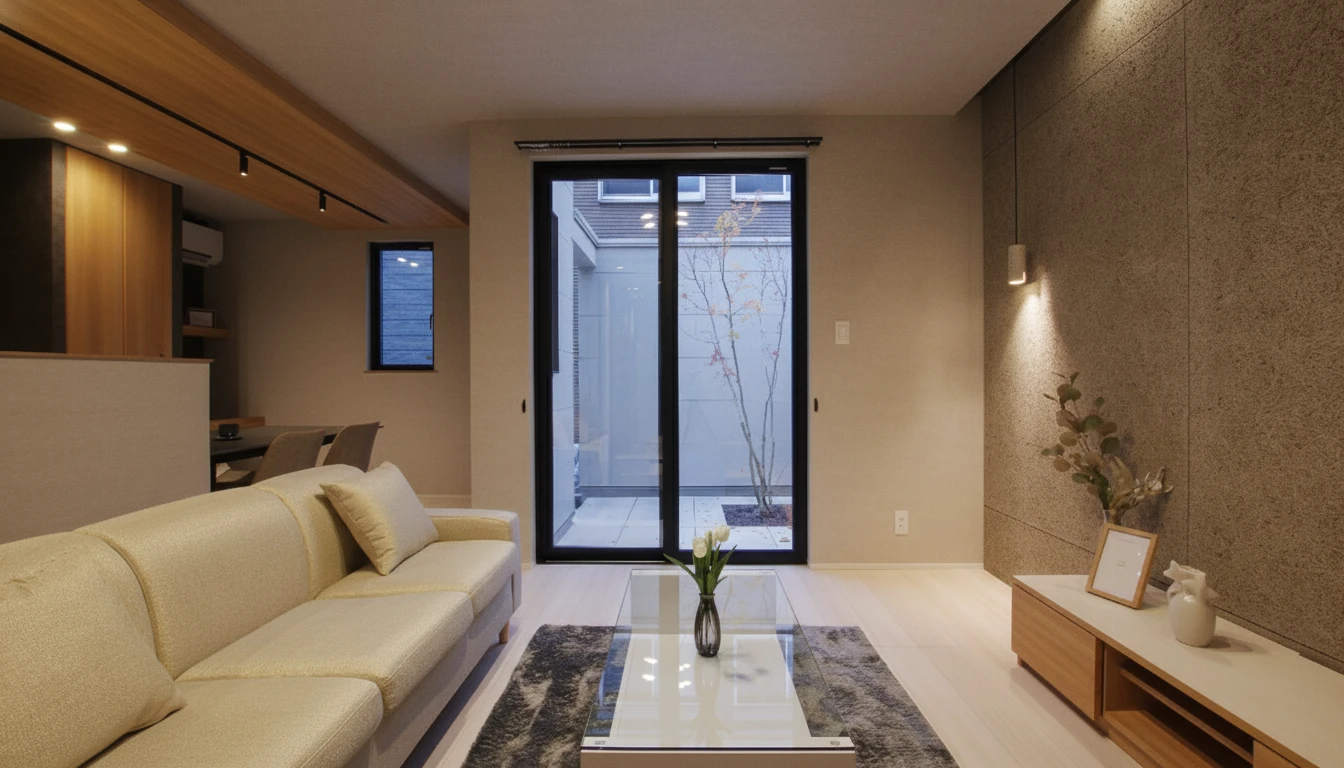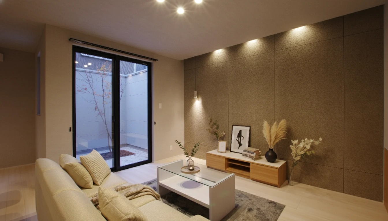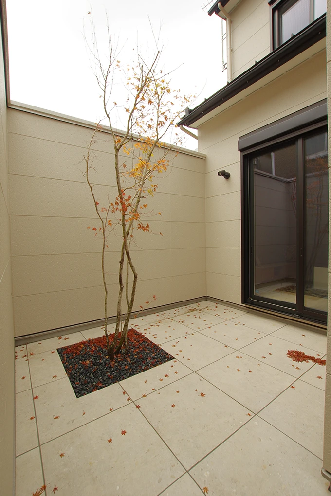 リビングの延長に設けたプライベートコート(中庭)は、外からの視線を気にせずにお子様の遊び場やBBQなどに活用できます。